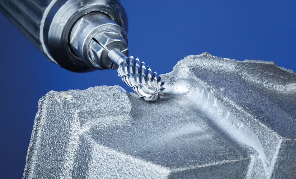 The innovative tooth geometry enables up to 100 % higher stock removal rates when used on cast iron compared to conventional cross-cut burrs.
