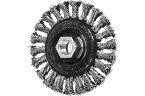 Carda redonda trenzada RBG Ø 100x12x5/8"-11, alambre de acero inoxidable Ø 0,50 mm, amoladora angular