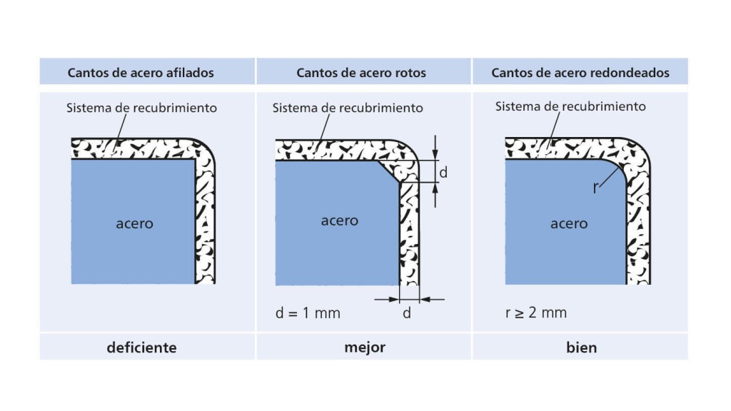 Los recubrimientos sobre cantos afilados presentan un espesor de capa menor que en las superficies planas. Las capas protectoras se rompen con frecuencia y, además, se dañan con más facilidad.